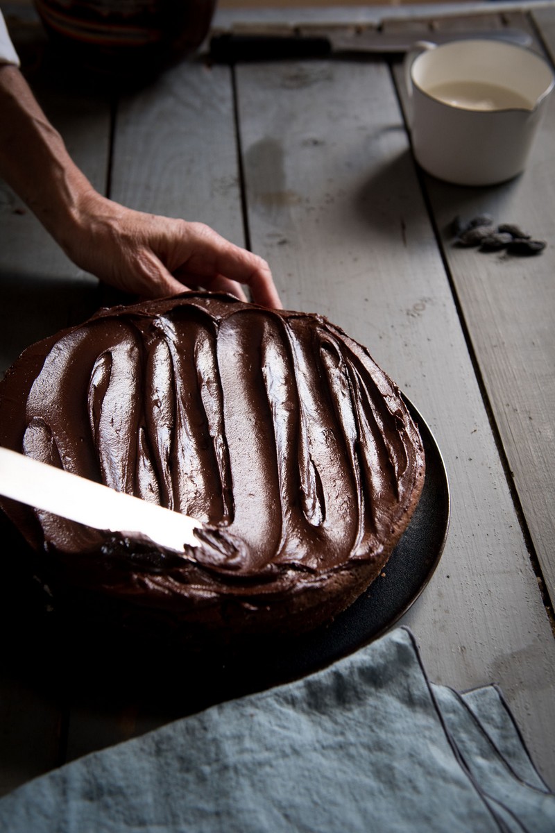 Laissez refroidir à température ambiante environ 20 à 30 mn. Recouvrez le gâteau avec la ganache en vous aidant du dos d’une cuillère ou d’une spatule.